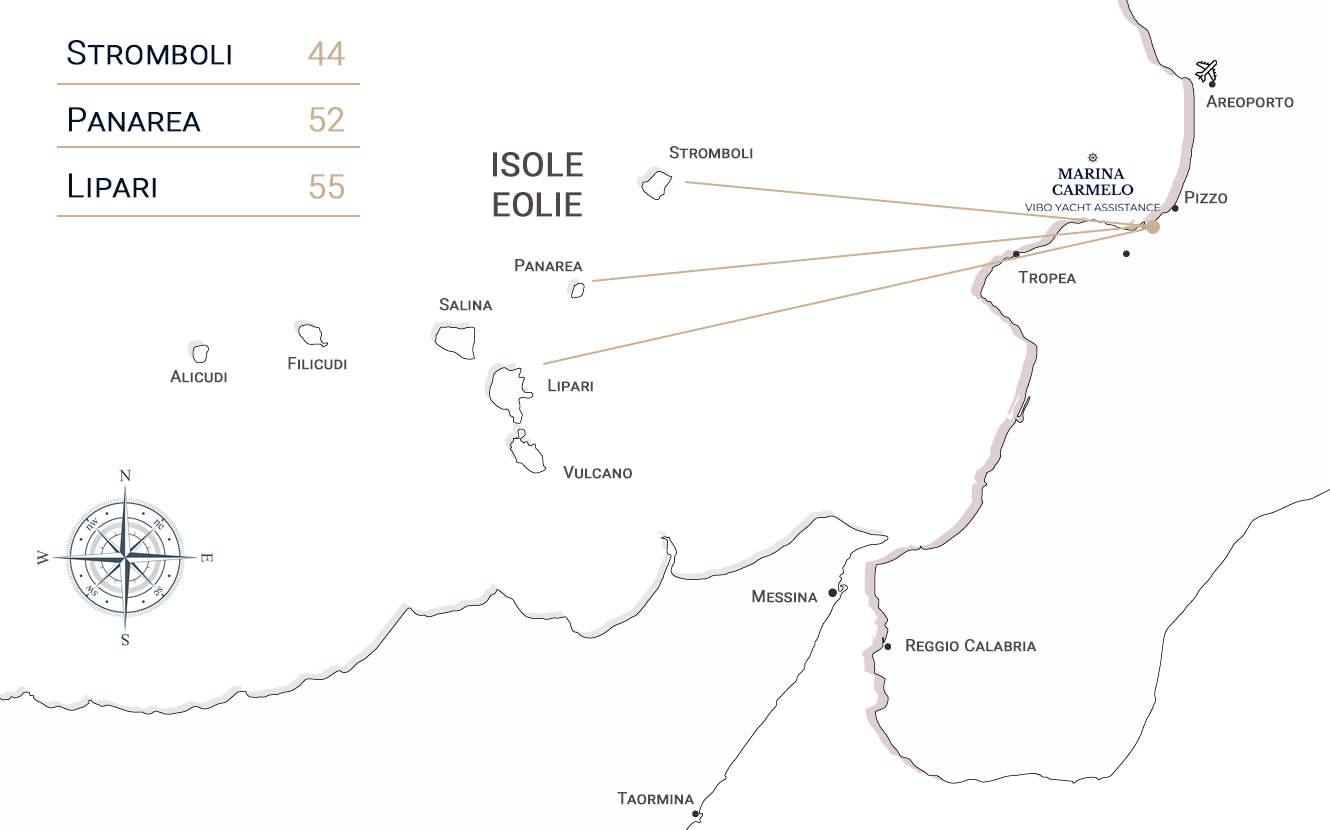Costa tirrenica della Calabria, ridossati a sud-ovest nel Golfo di Sant’Eufemia, nel porto di Vibo Valentia Marina all’interno della famosa “Costa degli Dei”